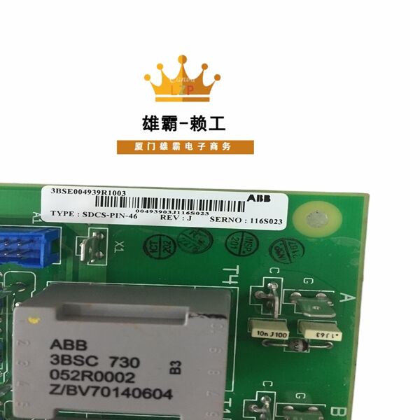 - SDCS-PIN-46-COAT是ABB公司生产的一款励磁控制板,主要用于发电机或同步电动机的励磁系统控制和调节。